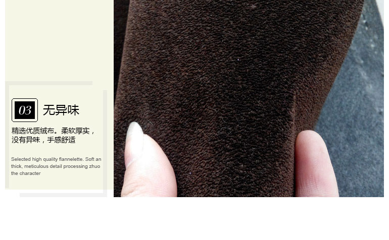 • 产品简介:产品名称:咖啡色珠粒绒布 幅宽:1.5米 颜 色:咖啡 成分及含量:咖啡色长毛绒+水刺布 规格:100码/卷 用途:适用于首饰盒、手表盒、礼品盒等内衬。 产品优势:立体感强、颜色鲜艳、手感柔和、豪华高贵、形象逼真、无毒无味、保温防潮、不脱绒、耐摩擦。
