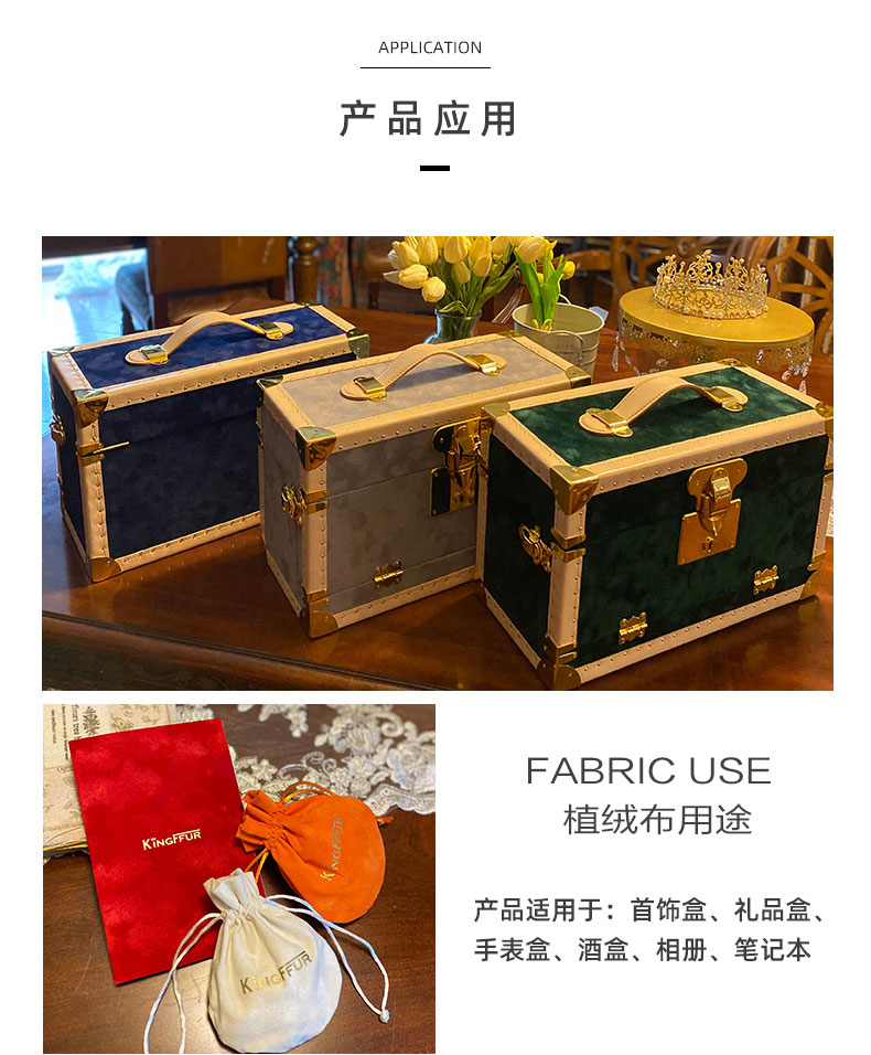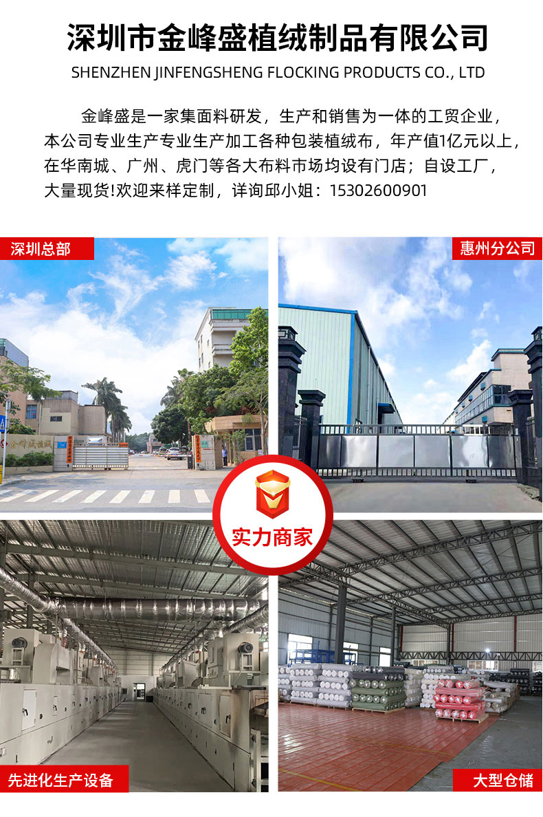 - 产品简介:公司主营产品有:珠宝盒植绒布,手袋植绒布,眼镜盒植绒布,酒类包装植绒布、文具类植绒布、各种环保类植绒布、包装植绒布等。公司秉承于世界环保理念,拥有多元素环保产品如:REACH、RoHS、无卤、低硫、降解、GRS再生、防霉、抗氧化、低甲醛、7P等。并于2020年已通Global Recycled Standard (GRS)4.0全球回收认证。根据客户的要求量身定做产品,帮客户解决新品开发过程中材料问题,为客户提供专业的技术服务